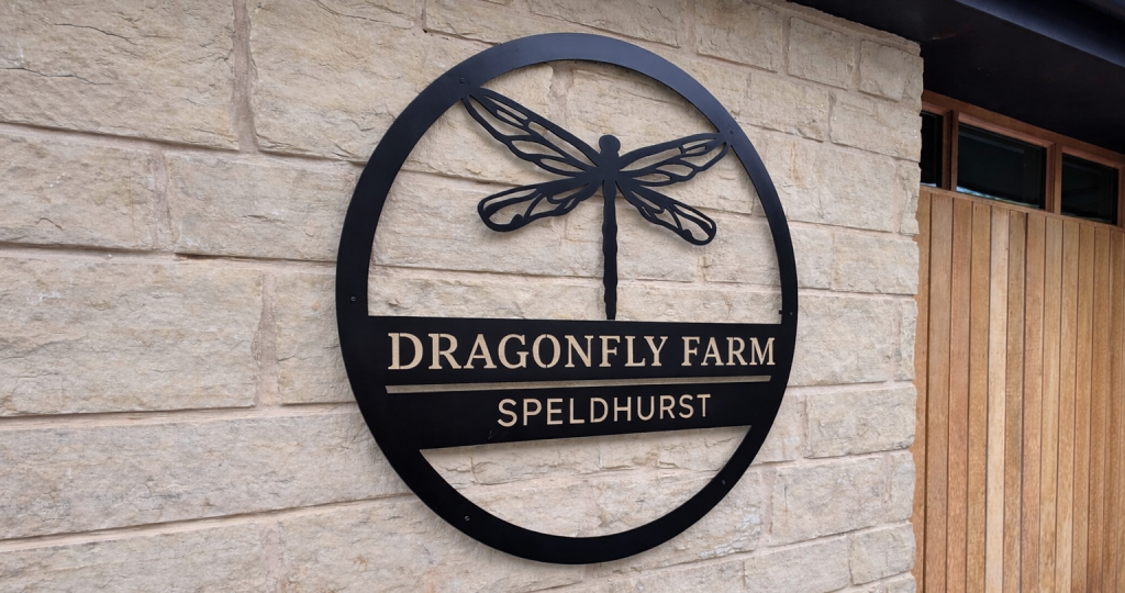 Dragonfly Farm was preparing to open a new farm shop in Speldhurst and needed signage that reflected the character and rural setting of the business, while still being clear and functional for customers.